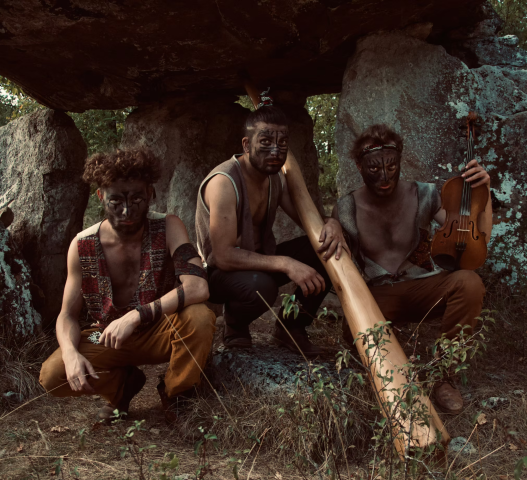 Musiciens : Adrien Fossaert : violon, chant, basse / Kick Miguel Amaro : cajon, didgeridoo, flûte harmonique, kalimba / Lucas Demuynck : guimbarde, appeaux, shruti bos, chant